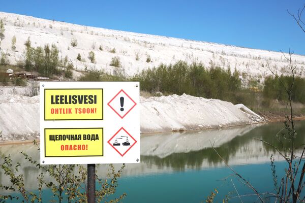 Сжигаемые в Нарве сланцы имеют на выходе до 46 % золы[7], таким образом электростанции производят около 4,5 миллионов тонн золы в год; система удаления золы предполагает её вымывание с помощью воды, а грязная вода хранится в специализированных золоотстойниках, которые имеют ярко-голубой цвет на спутниковых снимках.