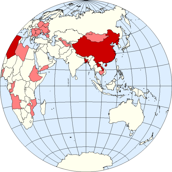 В 1960-х и 1970-х годах в Африке и Азии создавались народные или народно-демократические республики. Одни из них, например, Алжир[35] и Бангладеш[36], обрели независимость от колонизаторов, другие, как Занзибар[37] и Ливия[38] провозгласили себя республиками после свержения монархии.