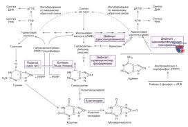 - Хромосомные мутации, влияющие на синтез или катаболизм пуринов.
