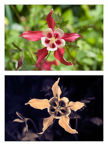 Цветовое зрение насекомых может быть дихроматическим (муравьи, жуки-бронзовки) или трихроматическим (пчелиные и некоторые бабочки). Как минимум один вид бабочек обладает тетрахроматическим зрением [38]. Существуют насекомые, которые способны различать цвета только одной (верхней или нижней) половинкой фасеточного глаза (четырёхпятнистая стрекоза). Для некоторых насекомых видимая часть спектра сдвинута в коротковолновую сторону. Например, пчёлы и муравьи не видят красного цвета (650—700 нм), но различают часть ультрафиолетового спектра (300—400 нм). Пчёлы и другие насекомые-опылители могут увидеть на цветках ультрафиолетовые рисунки, скрытые от зрения человека. Аналогично бабочки способны различать элементы окраски крыльев, видимые только в ультрафиолетовом излучении[33][39].