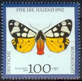 Насекомых изображают на почтовых марках (чаще бабочек, пчёл и жуков)[201], а иногда они также появляются на монетах и денежных банкнотах. Например, муравьи есть на лицевой стороне серебряных монет Боспорского царства. Существует предположение, что они были выпущены в античном городе Мирмекии, основанном греками в середине VI века до н. э. на берегу Керченского пролива. На монетах, отчеканенных в конце VII века до н. э., присутствуют изображения жуков — на аверсе монеты 1⁄24 статера 600—550 гг. до н. э. изображён крылатый Скарабей. На серебряном оболе, чеканившемся в Аттике в 545—515 гг. до н. э., также изображён скарабей. На серебряной монете достоинством 1 новозеландский доллар, выпущенной на Островах Кука, изображена златка Themognatha variabilis, а на польской бронзовой монете номиналом 2 злотых изображён жук-олень[202]. В Приднестровье в 2006 году была выпущена серебряная монета достоинством 100 рублей с изображением самца и самки жука-оленя[202]. В современной Латвии на аверсе памятной монеты из медно-никелевого сплава Банка Латвии достоинством 1 лат, выпущенной в 2003 году, также есть муравьи[203]. В 2006 году Вануату выпустила набор из шести посеребрённых монет «Бабочки», изготовленный с применением технологии тампопечати[204].