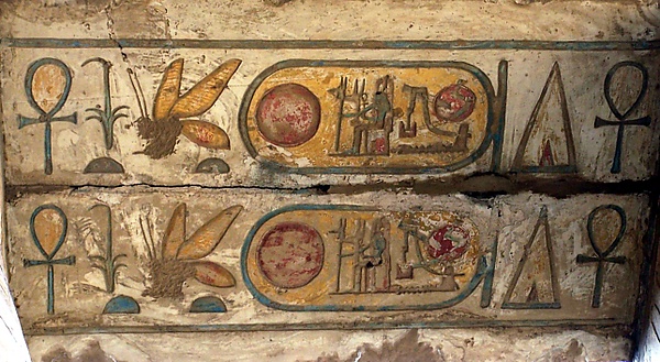 В древнейших мифах и верованиях человечества можно найти упоминания о насекомых. В Древнем Египте особо почитался священный скарабей, в Гелиополе считавшийся воплощением бога Атума[182]. Для египтян он олицетворял жизнь и самовозрождение, его название хепри было созвучно глаголу хепер («быть, становиться»). Фигурки скарабеев, сделанные из драгоценных или поделочных камней, служили печатями, амулетами и украшениями. Фигурку скарабея с написанными заклинаниями вкладывали на место сердца при мумификации людей и священных быков[182][183]. «Жук на грецком орехе» является одной из традиционных японских нэцкэ. Сам жук при этом символизирует предвестника счастливых событий[184].