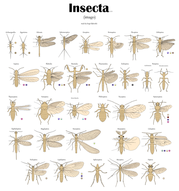 | Insecta Linnaeus, 1758 | |||||||||||||||||||||||||||||||||||||