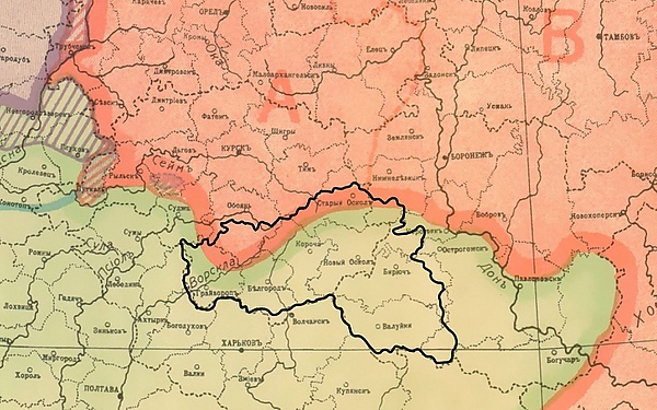 В первые годы советской власти в регионе сохраняется устоявшийся веками характер территориального проживания двух общин: русские доминируют в северной части современной Белгородской области и в большинстве городов — Белгороде, Старом Осколе, Валуйках, а украинцы в прилегающих к УССР западных, южных и восточных уездах, а также в некоторых городах и крупных посёлках — Короче, Борисовке, Бирюче, Чернянке, Великомихайловка.