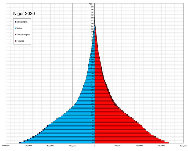 В 1950 году на планете жило 2,5 миллиарда человек. В 2019 году на Земле проживало 7,7 миллиарда человек. К концу XXI века ООН ожидает, что население мира составит 11,2 миллиарда человек. Возрастно-половая пирамида населения Земли визуализирует демографическую структуру населения. Два фактора, ответственные за форму пирамиды в 1950 году: растущее число рождений и большое количество детей в структуре населения Земли расширяли основание пирамиды, но постоянно высокий риск смерти на протяжении всей жизни постепенно её сужал к вершине пирамиды. Было много новорождённых по отношению к числу людей в более старшем возрасте. Сужение пирамиды чуть выше основания свидетельствует о том, в 1950 году 1 из 5 детей умерли до достижения пятилетнего возраста. В возрастно-половых пирамидах, построенных по данным за последующие десятилетия, явно видно, как когорта людей старшего возраста постепенно увеличивалась по отношению к детям, несмотря на то, что число рождённых детей увеличилось — с 97 миллионов в 1950 году до 143 миллионов в 2018 году, и что в то же время снизилась смертность детей. В возрастно-половой пирамиде за 2018 год сужение над основанием пирамиды гораздо менее сильно, чем в 1950 году; уровень детской смертности снизился с 1 из 5 в 1950 году до менее 1 из 20 в 2018 году[52].