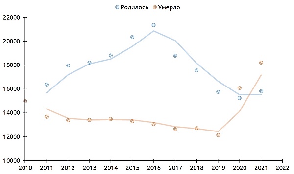 С революцией и последовавшей за ней Гражданской войной связан ощутимый демографический провал — за 3 года население сокращается более, чем на четверть. [47]