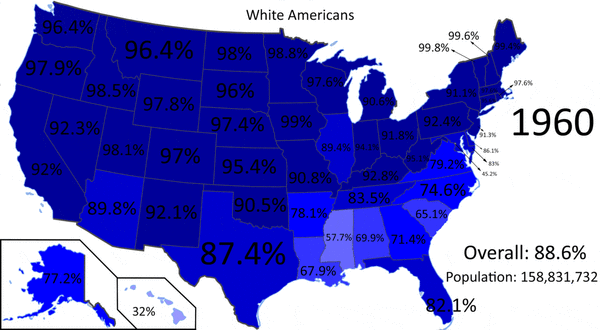 | Вашингтон | 6 724 540 | 77,3 | 3,6 | 1,5 | 7,2 | 0,6 | 4,7 |