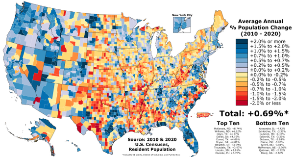 Большая часть населения США городское — 82,9 % в 2021 году[8].