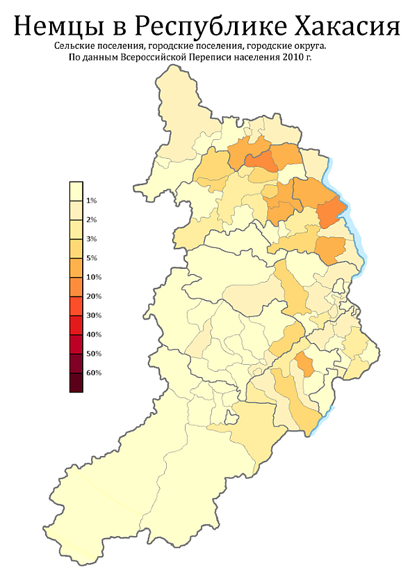В 2002 году наиболее многочисленными после русских и хакасов стали немцы, хотя их численность также снизилась. Главной причиной стал их выезд в Германию на постоянное место жительства.