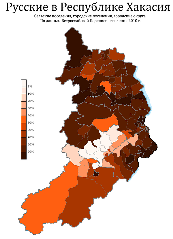 Сократилась численность украинцев, бывших в Хакасии в 1989 году третьими после русских и хакасов.