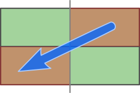 - Стол разделён вдоль белой полосой на зоны (две с каждой стороны)[100]. При подаче мяч должен удариться в правую зону своей половины и правую зону половины соперника (относительно подающего и его соперника соответственно), другими словами, мяч должен быть подан по диагонали[101].