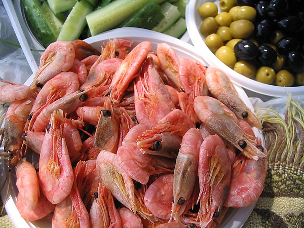Рецепты кулинарных блюд, использующих креветок в качестве составляющих, популярны во многих культурах. В иудаизме креветки, как и все морские членистоногие, в пищу запрещены. В исламе существует разногласие относительно дозволенности их употребления[2]. Как и другие морепродукты, креветки богаты кальцием и белком, но содержат мало калорий. Блюда с креветками — это также хороший источник холестерина, от 7 мг до 251 мг на 100 г, в зависимости от метода приготовления. Креветки как пища — деликатес.