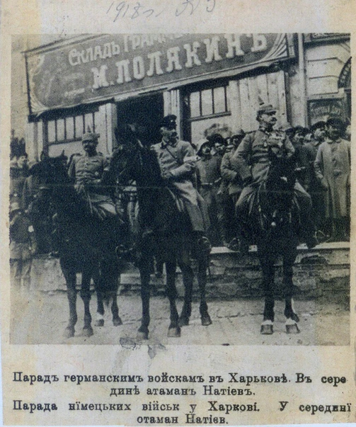 7 апреля 1918 г. силы Запорожского корпуса вместе с немецкими войсками зашли в Харьков, разбив большевистскую 2-ю Особую армию. Был проведён общий военный парад, который принимал также генерал Александр Натиев.