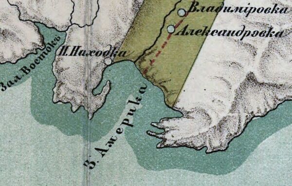 17 июня 1859 года пароход-корвет «Америка», на борту которого находился генерал-губернатор Восточной Сибири Н. Н. Муравьёв-Амурский, следовал к российским берегам. Показалась земля. Обогнув скалистый мыс, судно зашло в воды неизвестного залива. Стоял густой туман, затруднявший видимость, моросил дождь. Корабль медленно прошёл вглубь залива, держась на расстоянии двух миль от берега, недалеко от сопки Сестры стали на якорь. На следующий день — 18 июня 1859 года штурманом Красильниковым была сделана историческая запись в вахтенном журнале[10]: