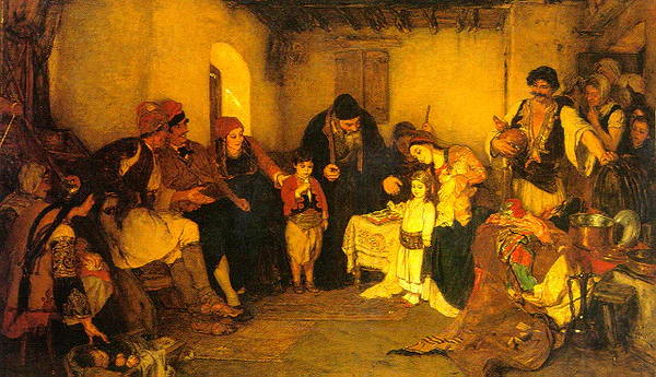 Знакомство с новогреческой живописью начинается с работ художников Ионических островов. Выполненные из фотографической точностью, картины рассказывают о первых годах истории независимой Греции. Наиболее значительные художники этого периода: Теодорос Вризакис и Николаос Кунелакис. Отдельная тематическая группа посвящена новогреческим живописцам, которые получили академическое художественное образование в Мюнхене; они формируют так называемую Мюнхенскую школу греческой живописи. Среди них Яковидис, Георгиос, Никифорос Литрас, Константинос Воланакис и Николаос Гизис. Особенно выделяются «Детский концерт» (греч. Παιδική Συναυλία) Георгиоса Яковидиса и «Обручение» (греч. Τα αρραβωνιάσματα) Николаоса Гизиса с характерной точностью, завершенностью сюжета.