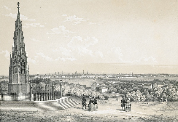 Идея создать памятник павшим героям изначально исходила от берлинских граждан и была подхвачена монархом. Первый план состоял в том, чтобы построить огромный неоготический собор перед Потсдамскими воротами, но он был отклонён по соображениям стоимости. На самой высокой точке горы 19 сентября 1818 года был заложен краеугольный камень. Архитектором сооружения был Карл Фридрих Шинкель. Скульптуры создавали самые известные мастера того времени: Кристиан Даниэль Раух, Кристиан Фридрих Тик и Людвиг Вильгельм Вихман. Отливку взял на себя Королевский прусский чугунолитейный завод. Открытие памятника состоялось 30 марта 1821 года, в годовщину штурма Монмартра. На церемонии присутствовал и российский император Александр I[3].