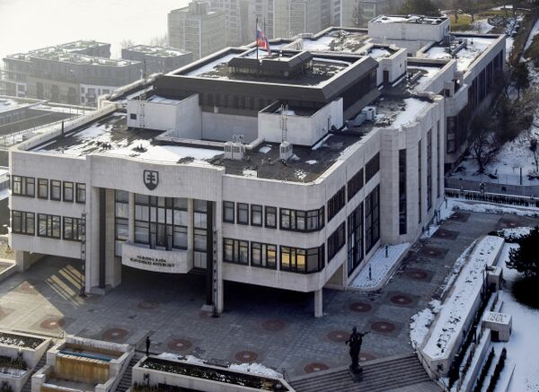 Главное здание Парламента находится неподалёку от крепости Братиславский Град на холме, на площади Александра Дубчека.