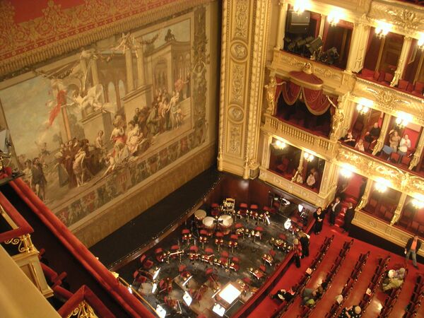 Потолок зрительного зала украшен восемью «Аллегориями искусства» (Ф. Женишек). В главном фойе — живописный триптих «Золотой век, упадок и воскресение искусства» (он же).