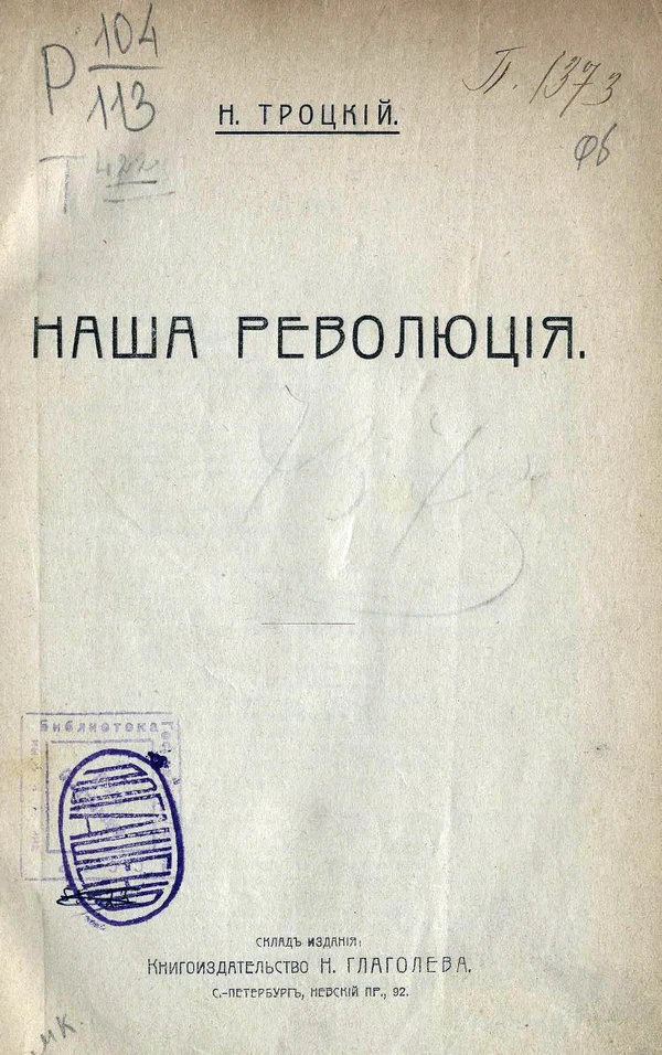- Троцкий Н. Наша революция. — СПб.: книгоиздательство Н. Глаголева, тип. «Север», 1906. — 286 с.