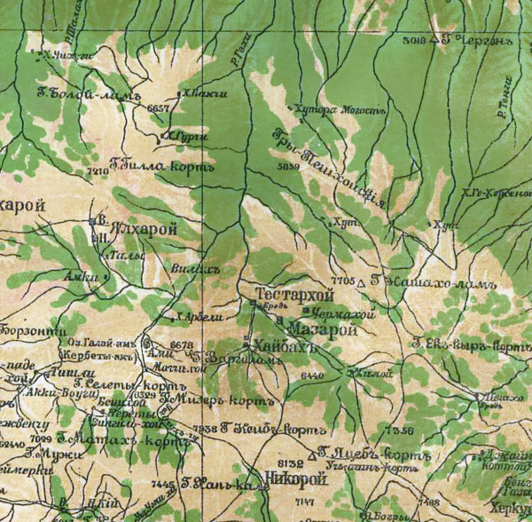 | Моцарой | Моцӏара[12], Моцкъара[13][11], Моцӏарха[11] | селение в 2-х км к з. от Чармаха[11] | |||