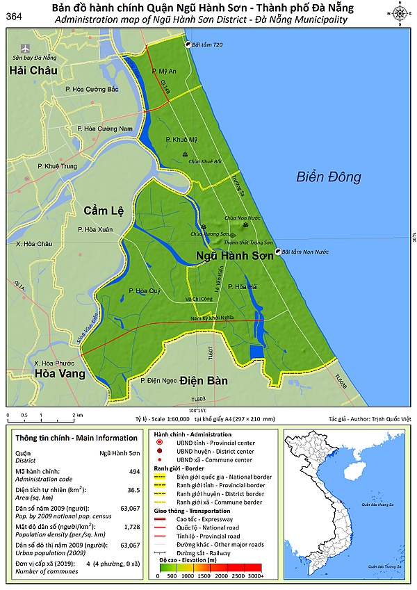 Район Нгуханьшон расположен на юго-востоке города Дананг и имеет следующие границы: