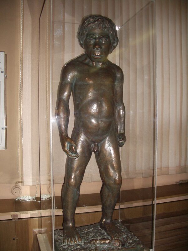 В 1886 году в пещере Спи (Бельгия) М. де Пюри и М. Лоэ находят два хорошо сохранившихся скелета неандертальцев (мужской и женский) вместе с орудиями. Эта находка поставила точку в споре о том, являются ли неандертальцы отдельным видом людей: ответ был очевидно положительный. В то же время, авторы находки, исходя очевидно из априорного представления о неандертальцах как о переходном звене — полуобезьянах, неверно интерпретировали скелеты, предположив, что неандерталец передвигался на согнутых ногах. Таким образом был заложен научный миф, оказавшийся довольно устойчивым. Первые дарвинисты вообще сразу ухватились за останки неандертальца как за искомое «недостающее звено» между обезьяной и человеком; по словам Б. Ф. Поршнева, они «прикладывая схему Геккеля, проводили мысленную прямую линию между человеком и антропоморфной обезьяной через неандертальца; хотели видеть в нём биссектрису, делящую угол между человеком и обезьяной. Неандерталец не очень-то укладывался на эту середину и его подчас несколько стилизовали, подталкивали к обезьяне, благо не доставало и лицевых костей, и других костей скелета»[21].