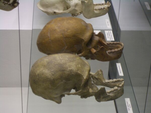 Если же мы сравним череп классического неандертальца и череп нашего современника, имеющий подобные черты (мощные кости, толстые надбровные дуги, глубоко сидящие глазницы, низкий скошенный лоб, мощные челюсти почти без подбородка, покатая и вытянутая назад долихоцефальная форма мозговой части, см. рис. ниже), то можем заметить у неандертальцев ряд наиболее исключительных отличий: