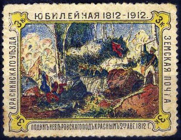 В 1912 году была выпущена юбилейная земская почтовая марка Краснинского уезда Смоленской губернии, посвящённая подвигу генерала Неверовского под Красным.