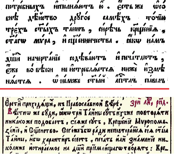 Среди этих (семи) таинств, есть три святыни, крещение, конфирмация и священство, как характиры, от других отличны, они оставляют знак духовный в душе (человека), неизгладимый[1].