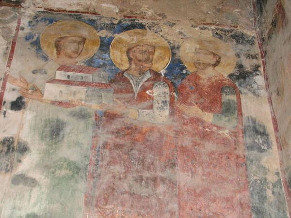 Интерьер церкви украшен фресками, выполненными по заказу кахетинского царя Левана в середине XVI века. Царь вместе со своей семьёй изображен в западной части южной стены. Они несут на себе влияние поздневизантийского палеологического искусства[3].