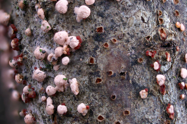 Широко распространённый вид древесных сапротрофов, образующий на ветвях деревьев и кустарников группы небольших розоватых или жёлто-оранжевых спородохиев на ножке — плодовых тел бесполого спороношения, а также многочисленные мелкие красно-коричневые перитеции — плодовые тела полового спороношения.