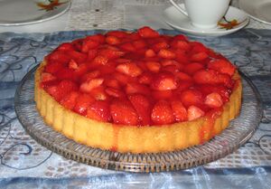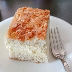 Торт в понимании немцев подразумевает изящно украшенное кондитерское изделие круглой формы с кремом и фруктами, состоящее из нескольких слоёв[489]. Немцы любят творожно-сливочные торты с ягодными и фруктовыми вкусами, а также желейные торты со свежими фруктами и ягодами[490] и взбитыми сливками сверху. Хит о пагубной для здоровья любви к калорийным тортам, пирогам и пирожным под названием «Но, пожалуйста, со сливками!» (нем. Aber bitte mit Sahne!) в 1970-е годы исполнял Удо Юргенс: четыре подруги ежедневно в три с четвертью собираются в кондитерской на «кофе и пирог» и объедаются шварцвальдским тортом, безе со сливочным кремом, тортами с масляным кремом, «укусом пчелы» и «головой мавра», «захером», линцским и марципановым тортами и кексом[491]. Марципановый торт с шоколадом и вишней был любимым блюдом короля Пруссии Фридриха II[492]. «Немецкие торты — образец высокоразвитой европейской культуры», — считает гамбургский исследователь социотрендов Петер Випперман. Традиционные немецкие высококалорийные торты с масляным кремом или взбитыми сливками, подрастерявшие популярность на родине, пользуются большим успехом за пределами страны и в особенности за океаном, и, «репатриируясь» оттуда, уже восстанавливают свой статус в Германии[493]. Бисквитный кремовый торт-рулет «полено» в Германии именуется «дубом Бисмарка» (нем. Bismarck-Eiche)[494], немецкое название пирожного «эклер» — «любовная косточка»[495], немецкие крупные профитроли со взбитыми сливками называются «ветроплясами»[496][497][498][499].