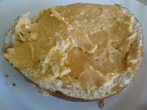 Бутерброд с обацдой на половинке «брецельной» булочки |