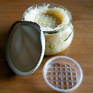 Квашеная капуста знакома немцам с самого детства: у В. Буша во второй проказе «Макса и Морица» тётя Больте спускается в подвал набрать себе тарелку любимой кислой капусты к жареным цыплятам, а бабушка в детской книге «Разбойник Хотценплотц» О. Пройслера часто кормит внуков жареными сосисками с картофельным пюре и квашеной капустой[252]. Ныне немцы сами капусту обычно уже не заквашивают, а приобретают готовую: бочковую на развес — на рынках или консервированную — в супермаркетах. В классическом рецепте перед употреблением квашеную капусту тушат около получаса в небольшом количестве бульона или воды и жира с пряностями — лавровым листом, тмином, можжевеловой ягодой, гвоздикой, семенами фенхеля, майораном, а также эcтрагоном, чабером и сахаром. В зависимости от региона могут появляться дополнительные ингредиенты: репчатый лук, яблоко или виноград, например, в Гессене добавляют яблочный сок, во Франконии — нарезанное яблоко, а в Тюрингии — пиво[253]. Квашеную капусту готовят с макаронными изделиями, с ней делают запеканки, а в Баварии — даже пиццу с леберкезе[254]. В современной Германии кислая капуста, пройдя период падения до уровня «еды для бедных» или в лучшем случае «регионального специалитета»[245], переживает новый подъём, удостоившись внимания шеф-поваров звёздных ресторанов[255]. Признанные немецкие мастера высокой кухни Альфонс Шубек и Томас Мартин публикуют элегантные рецепты квашеной капусты, тушенной в шампанском[256][257].