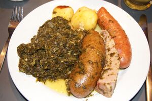 Белокочанную капусту большинство немцев потребляют квашеной, в свежем виде её знают разве что как ингредиент дёнер-кебаба, а не в салате с яблоком[322][323]. Её среднее потребление в Германии вместе с краснокочанной составляет 5,2 кг в год[291]. Краснокочанная капуста, тушённая в красном вине с яблоком и уксусом, — классический гарнир к рождественскому гусю, она также идёт в салаты в сыром или пассерованном виде[324]. В Германии на выращивании капусты с конца XIX века специализируется район Дитмаршен в Шлезвиг-Гольштейне, прославившийся как «капустохранилище Германии»: поля общей площадью более 3 тыс. га, на которых помимо белокочанной произрастают также краснокочанная, цветная и савойская капуста, дают урожай в 80 млн кочанов и являются самым крупным специализированным регионом возделывания капусты в Европе[325]. На севере Германии также выращивают кудрявую капусту — листовую, не образующую кочанов. Урожай так называемой «фризской пальмы»[326] собирают после первых заморозков до конца февраля. Посадки кудрявой капусты занимают в Нижней Саксонии 500 га[327]. Самое известное блюдо из кудрявой капусты — грюнколь: капусту бланшируют, а затем тушат с репчатым луком, шпигом и овсяными хлопьями и сервируют с отварным картофелем к касселеру или колбаскам — традиционно крупяному пинкелю, сыровяленым брегенвурсту или специальной капустной колбасе[328]. В зимнее время в Нижней Саксонии и Бремене популярны так называемые «капустные поездки» — семейные выезды большими компаниями на природу, включающие прогулку по полям, развлекательные конкурсы для детей и алкоголь для взрослых с традиционной ручной тележки и обязательный грюнколь на обед в загородном ресторанчике[329][330]. В прибрежных районах Нижней Саксонии овощем считается произрастающая на затопляемых морем лугах дикая «трубчатая капуста» (нем. Röhrkohl) — приморский триостренник, из которого готовят айнтопф, а также гарнир, похожий на грюнколь. Сбор растения, находящегося под угрозой вымирания, разрешается только местным жителям для личного потребления[331]. На востоке Германии, в бранденбургском Пригнице, есть своя кулинарная гордость — пряное ассорти разных видов капусты с черешневыми и виноградными листьями[332], появившееся ещё в голодные годы Тридцатилетней войны[333].