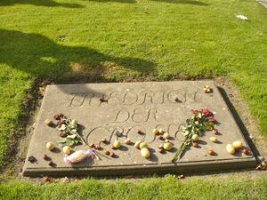 Клубни картофеля на могильной плите Фридриха Великого в Сан-Суси |