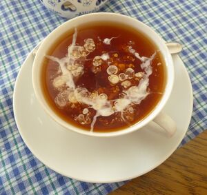 Рыночная доля чая в Германии очень скромная: потребление чая, чёрного и зелёного, в 2016 году составляло на душу населения 28 литров (для сравнения: кофе — 162 литра, минеральной воды — 148 литров)[564]. Из чаёв немцы отдают предпочтение травяным и фруктовым чаям, потребление на душу населения составляет 50 литров в год[124]. Исключение из общегерманского правила составляет Восточная Фризия на северо-западе страны, где сложилась уникальная, но малоизвестная остфризская чайная культура. Остфризцы — чайные чемпионы мира, обгоняют даже китайцев и британцев, выпивая в год по 300 литров чёрного чая собственного, остфризского купажа, ежегодно составляемого местными профессионалами не менее чем из десяти сортов индийского чая[564][565]. В Восточной Фризии чай готовят и пьют по строгим правилам церемонии: на местной мягкой воде, в посуде из тонкого фарфора, с леденцовым сахаром на дне чашки и сливками, которые вливают в чай ложечкой по стенке по кругу так, чтобы они поднялись со дна чашки к поверхности «облачками». Размешивать сахар в остфризском чае — моветон, нужно слушать, как он, растворяясь, похрустывает, а выпить за один присест следует не менее трёх чашек[566].