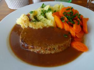Каждый второй немец ежедневно потребляет колбасу или мясо[4]. Профессор психологии питания Фульдской высшей школы Кристоф Клоттер считает, что мясо для немцев символизирует изобилие, власть, достаток и маскулинность, в их подсознании жизнь удалась, если на столе есть мясо[5][6]. В близком к «Зелёным» Фонде Генриха Бёлля подсчитали, что среднестатистический гражданин ФРГ съедает за свою жизнь 1094 животных[7][8]. Предложение ввести в столовых по четвергам вегетарианский день, выдвинутое «Зелёными» накануне выборов в бундестаг в 2013 году, не нашло поддержки в немецком обществе и подверглось острой критике со стороны политических конкурентов[9][10]. По данным опроса, проведённого Федеральным министерством продовольствия и сельского хозяйства в 2020 году, 26 % населения Германии ежедневно потребляют мясо и колбасы, причём этот показатель среди немецких мужчин составляет 32 %, а среди немецких женщин — 20 %. 33 % опрошенных немцев назвали в 2020 году любимым мясным блюдом жаркое, шницель или гуляш[11]. Последовательно отказывается потреблять мясо и продукты животного происхождения только малая часть населения, причём чем моложе возрастная категория, тем больше в ней вегетарианцев. Их в Германии по данным исследования 2015 года около 3 %, пескетарианцев — 2 %, а веганов — 1 %, тем не менее, каждый третий немец, регулярно потребляющий мясо, как минимум иногда испытывает из-за этого угрызения совести[12]. По мнению этнолога питания Марина Тренка из Франкфуртского университета, немцы хотят есть мясо, но так, чтобы оно было «незримым» — чтобы и не мясо на вкус, и о животных не напоминало. Потребление мяса растёт, но это уже преимущественно не части животного, как, например, некогда телячья голова или бычий хвост, а филе и стейки, куриные грудки и наггетсы[13][14].