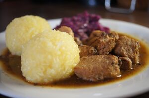 Картофельные тюрингенские клёцки в качестве «насыщающего гарнира» к говяжьему гуляшу |