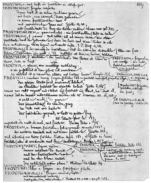 - Иоганн Леонард Фриш (нем. Johann Leonhard Frisch) в 1741 году опубликовал двухтомный «Немецко-латинский словарь» (нем. Teutsch-Leteinisches Wörterbuch) с обширным этимологическим комментарием.