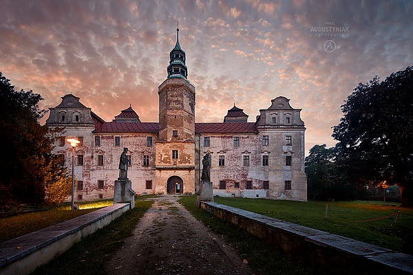 В 1313 году князь Болеслав Первородный, сын опольского князя Болеслава I, построил на месте укреплений, которые предположительно существовали здесь еще с XIII века, низменный каменный замок. Старая готическая постройка полностью слилась с позднейшими ренессансными стенами, поэтому ее внешний вид невозможно воспроизвести. В юго-западном крыле замка видны остатки так называемой готической зендрувки (частично остекленевший при обжиге кирпич).