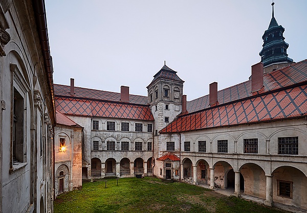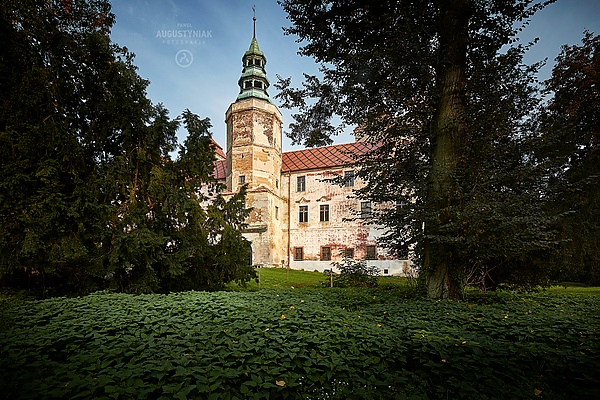 Резиденция строилась поэтапно (1573—1577, 1589—1592, 1610), строительство проводил род Пюклеров, а позднее (с XVII века) — Промницев. Четырехкрылая постройка располагалась вокруг прямоугольного двора, окруженного аркадами. После 1787 года, по инициативе нового владельца, графа Яна II Непомука фон Прашмы, был изменен дизайн интерьеров замка, сделаны многочисленные изменения на отдельных этажах здания. В XIX веке были замурованы аркады первоначальных клуатров и перестроена часовня.