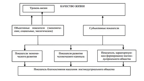- cубъективные показатели базируются на самооценке граждан и отражают степень их личной удовлетворённости жизнью, психоэмоциональное состояние и уровень социального оптимизма[2][3].