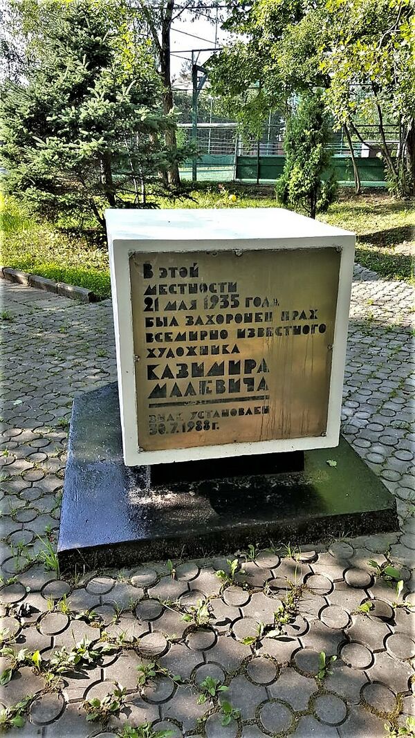 С 1909 года в Немчиновку постоянно приезжал жить и работать Казимир Малевич. После его смерти, 21 мая 1935 года урна с прахом была захоронена под любимым дубом художника близ деревни Немчиновки. Над могилой установили деревянный кубический монумент с изображённым чёрным квадратом. В годы войны могила была утрачена. Позже её расположение определила группа энтузиастов. Она была на месте пахотного колхозного поля, поэтому в 1988 году памятный знак для увековечивания места захоронения вынужденно разместили на опушке леса, примерно в двух километрах от реального погребения[35]. Он представляет собой белый бетонный куб с красным квадратом на лицевой стороне. Сейчас рядом стоит дом № 11 по улице Малевича в Немчиновке.