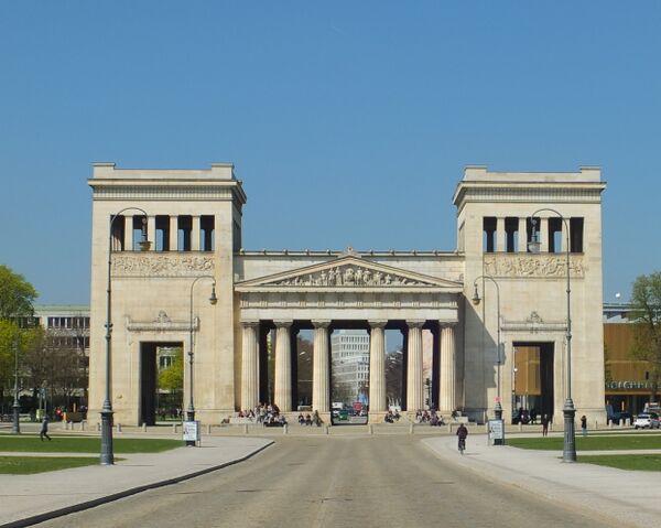 В 1818 году в Баварии всё ещё продолжались дебаты о возможности создания немецкого национального стиля и принц Людвиг всё же проявил интерес к неоготике[58]. В тот период в баварской архитектуре на первый план выдвинулся Лео фон Кленце, учившийся в Берлине у Давида Жилли, в своё время примкнувший к движению Прусского эллинизма и ставший впоследствии основателем ещё одной разновидности этого направления — Мюнхенского классицизма (нем. Münchener Klassizismus)[54]. Перед зодчим стояла задача на основе науки доказать, что неогреческий вариант классицизма являлся одновременно и национальным и христианским и современным для Германии, для чего он обратился к популярной тогда теории о Великом переселении народов, из которой он сделал вывод, что архитектура распространялась соответственно переселению индогерманских племён, с востока по Дунаю на северо-запад и уже оттуда на юг, в Италию. На основе данной теории, архитектор вывел идентичность происхождения и архитектурного оформления древнегреческих храмов и построек в курганах гуннов, городских стенах и башнях в Швейцарии, монументах кельтской Галлии, скандинавских постройках друидов, Стоунхендже и Карнаке[58].