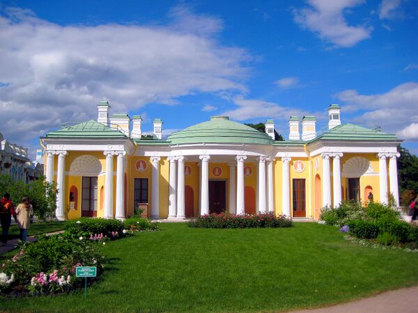 В царствование Николая I происходил расцвет усадебного и дачного строительства в пригородах Санкт-Петербурга. Наиболее характерные черты подражания античности несли загородные резиденции императорской семьи. Наибольший интерес среди данных строений представляли дворцово-парковые постройки Андрея Штакеншнейдера, в архитектуре которых свободно соединялись неогреческие, римские и помпейские мотивы. Царицын павильон в Петергофе (1842—1844) по наружному виду скорее относился к неогреческому стилю, в то время как его внутренняя отделка стала первым опытом целостного помпейского интерьера. К неогреческому стилю относился и императорский дворец Бельведер (1853—1854), хотя в его архитектуре присутствовали и римские черты. Композиция верней части представляла собой греческий периптер, окружённый мраморными колоннами ионического ордера. Стены нижнего этажа содержали множество деталей, отсылавших к древнегреческой архитектуре: накладные пилястровые портики, решётки парапетов, копию кариатид Эрехтейона на садовом фасаде. Компиляцию из римского, неогреческого и помпейского стилей представлял собой и дворец в Сергиевке в Петергофе (1839—1842)[74].