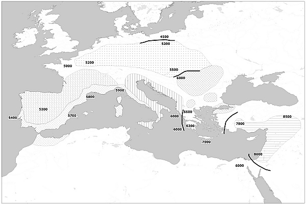 Первой неолитической культурой, широко распространившейся по Европе, стала культура линейно-ленточной керамики, возникшая к северу от земель Старчево-кришской культуры. Генетически носители данной культуры близки современным жителям Северного Кавказа, пути их попадания на восток Европы дискуссионны — возможно, эти области были затоплены в результате увеличения площади Чёрного моря. Данная культура быстро распадается на локальные варианты — дунайский и западноевропейский.