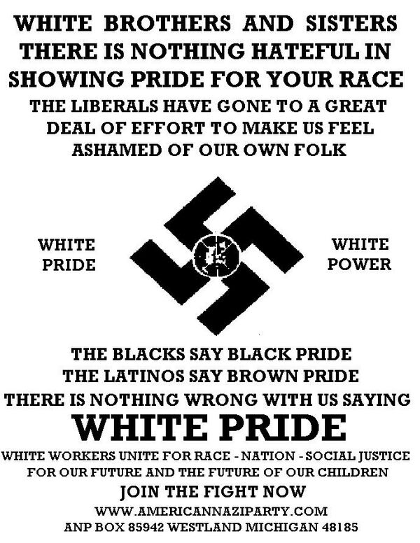 Организации, информирующие об неонацистской деятельности в США, включают Антидиффамационную лигу и Южный центр правовой защиты бедноты. Американские неонацисты нападают на меньшинства и притесняют их[37].