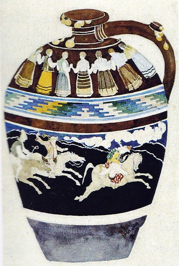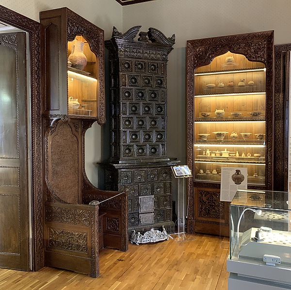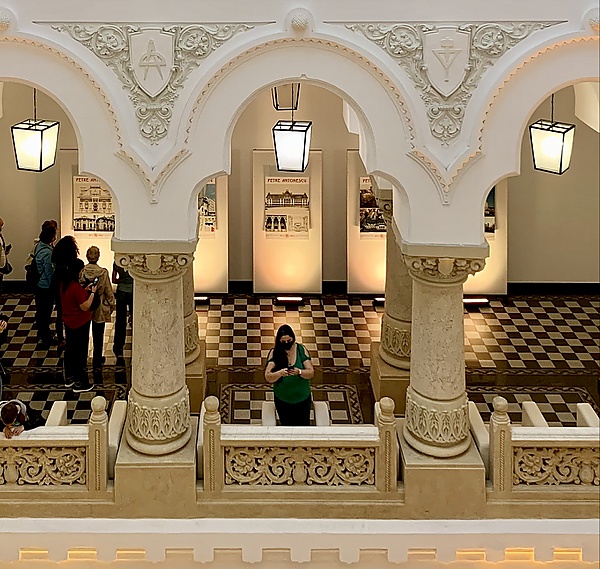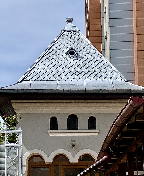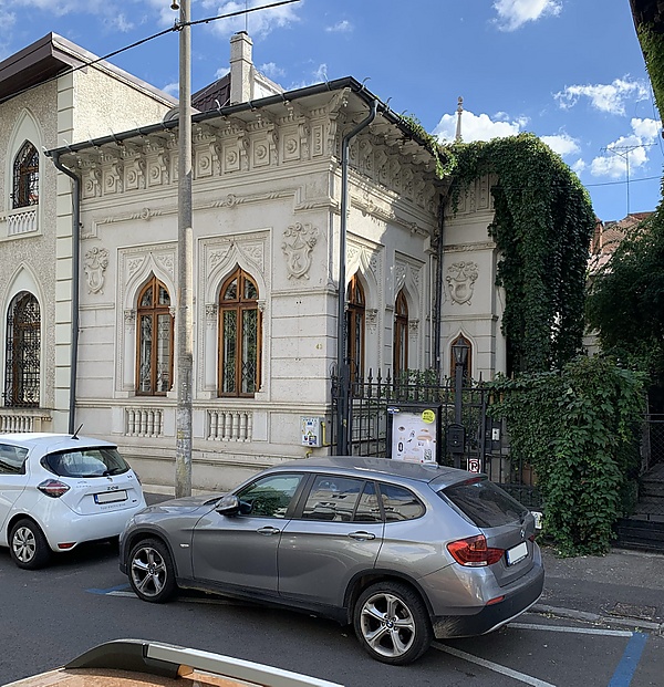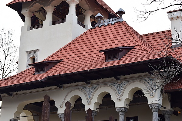 В керамическом орнаменте присутствуют эклектичные элементы: классические геометрические мотивы или ренессансные цветочные мотивы (но интерпретированные в духе модерна), которые покрывают всю поверхность кладки беседки, а сам приём высокого рельефа, окрашенного в белый, синий и охристый цвета, в стиле Луки делла Роббиа, контрастирует с относительной сдержанностью старой румынской архитектуры, от которой она и произошла. Таким образом, буфет имеет весёлый, живой и, прежде всего, румынский вид[12].