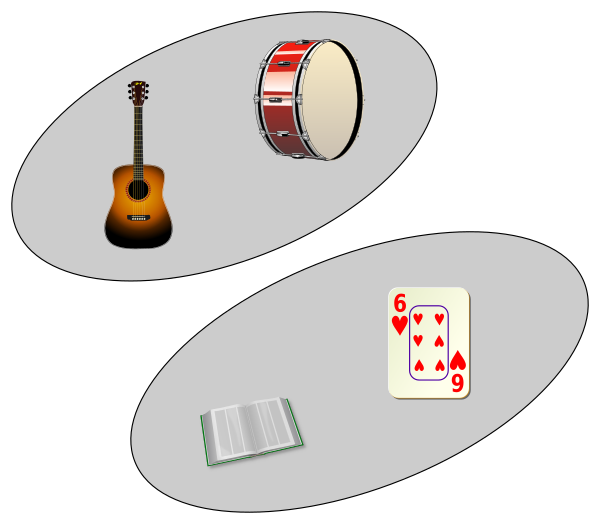 Дизъюнктное объединение может означать две вещи. В наиболее простом случае это может означать объединение дизъюнктных множеств[11]. Но если два или более множеств не дизъюнктны, их дизъюнктное объединение может быть образовано путём модификации множеств[12][13]. Например, два множества могут быть сделаны дизъюнктыми путём замены элементов упорядоченными парами элемента и индекса, определяющего, какому множеству принадлежит элемент – первому или второму[14]. Та же техника может быть применена для семейств из более чем двух множеств[15].